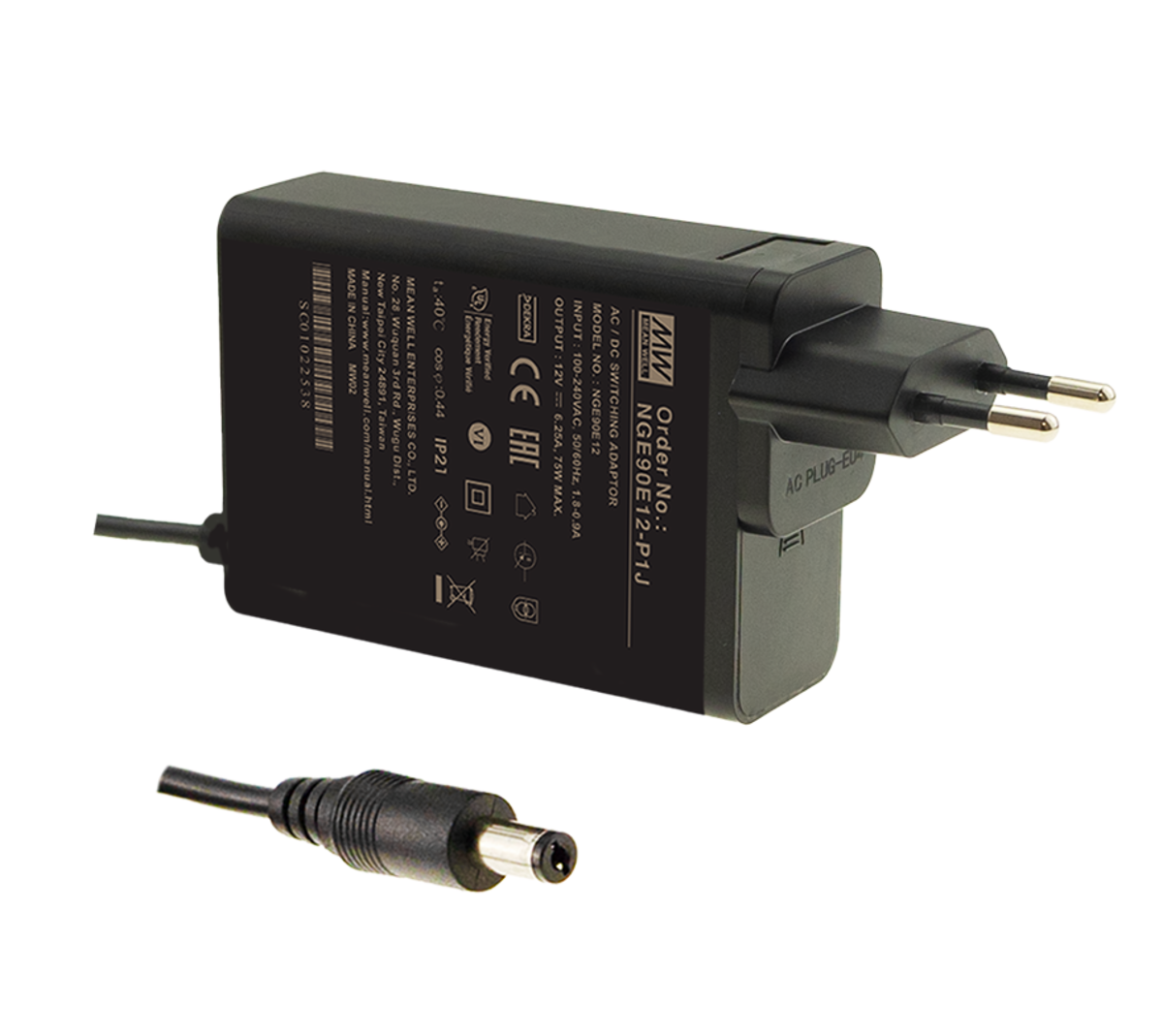 233 | ![]() | Manufacturers Part No. NGE90I12-P1J(NGE90I12-P1J) MEAN WELL Wall Mount Power Supply 75W 12V 6,25A 5,5*2,1mm Barrel Plug | Customer Part No. Customer Project No. | 21 Pcs. Planned Delivery Time Ø 7 Weeks Available (from stock) | (at least 1 or mul. of 1) | MEAN WELL | Wall Mount Power Supply | 75.0 W | 12.0 V | 6.25 A | 90.0 % | 80.0 V | 264.0 V | 5 5*2 1mm Barrel Plug | Plug Adapter | -30.0 °C | 70.0 °C | 62.0 mm | 30.0 mm | 85.5 mm | II | Household ITE Industry Medical | AS/NZ BSMI CCC CE CSA EAC EN IEC PSE RCM UKCA UL | ANSI/AAMI ES 60601-1 EN 60335-1 EN 60601-1 EN 61558-1 EN 61558-2-16 EN 62368-1 IEC 60335-1 IEC 60601-1 IEC 61558-1 IEC 61558-2-16 IEC 62368-1 UL 62368-1 | DC compatible | |||||