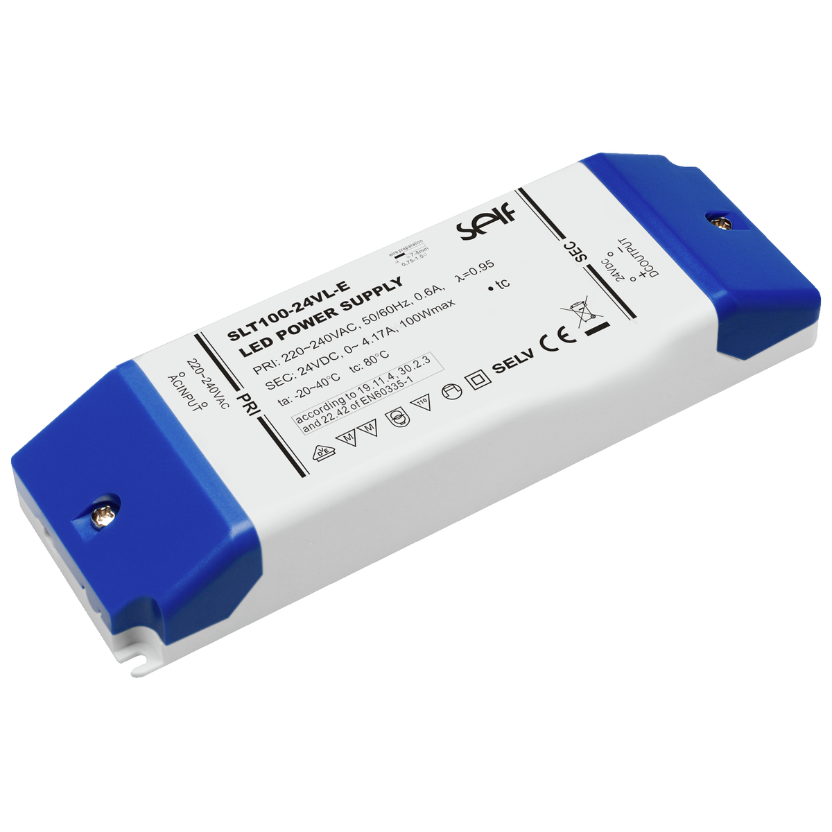 1114 | ![]() | Manufacturers Part No. SLT75-24VL-E(SLT75-24VL-E) Self AC/DC LED power supply unit CV 75W 24V 3,100A IP20 not dimmable | Customer Part No. Customer Project No. | 23 Pcs. Available (from stock) | (at least 1 or mul. of 1) | Self | 75.0 W | 1 | 24.0 V | 3.1 A | not dimmable | Enclosed Plastic | IP20 | 87.73 % | 220.0 V | 240.0 V | -20.0 °C | 50.0 °C | 185.0 mm | 60.0 mm | 31.0 mm | Screw Terminal | Lighting | CCC CE EN UKCA | EN 61347-1 EN 61347-2-13 | Independent Control Gear | |||||