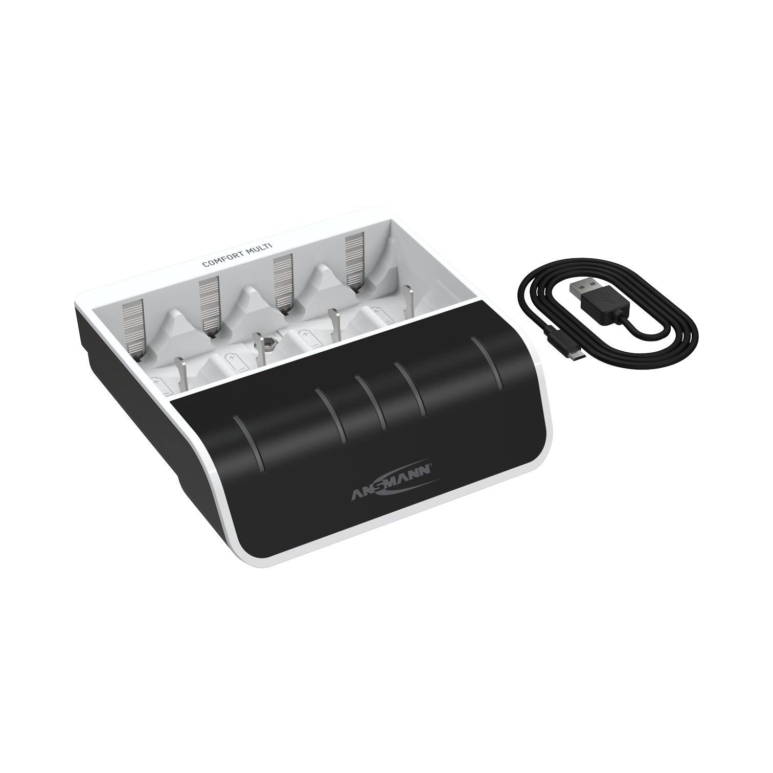 - Schnell-Ladegerät mit USB Eingang für 1-4 NiMH Akkus der Größen Micro AAA / Mignon AA inkl. USB Kabel
