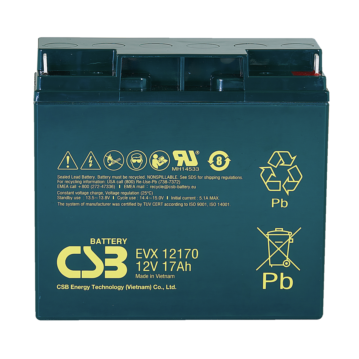 423 | ![]() | Manufacturers Part No. EVX12170(EVX12170) CSB Lead-acid batteries EVX 12V 17.000mAh L181mm B76,2mm H167mm Flat Pole M5 | Customer Part No. Customer Project No. | 0 Pcs. Planned Delivery Time Ø 2 Weeks Available on order | (at least 4 or mul. of 4) | |||||