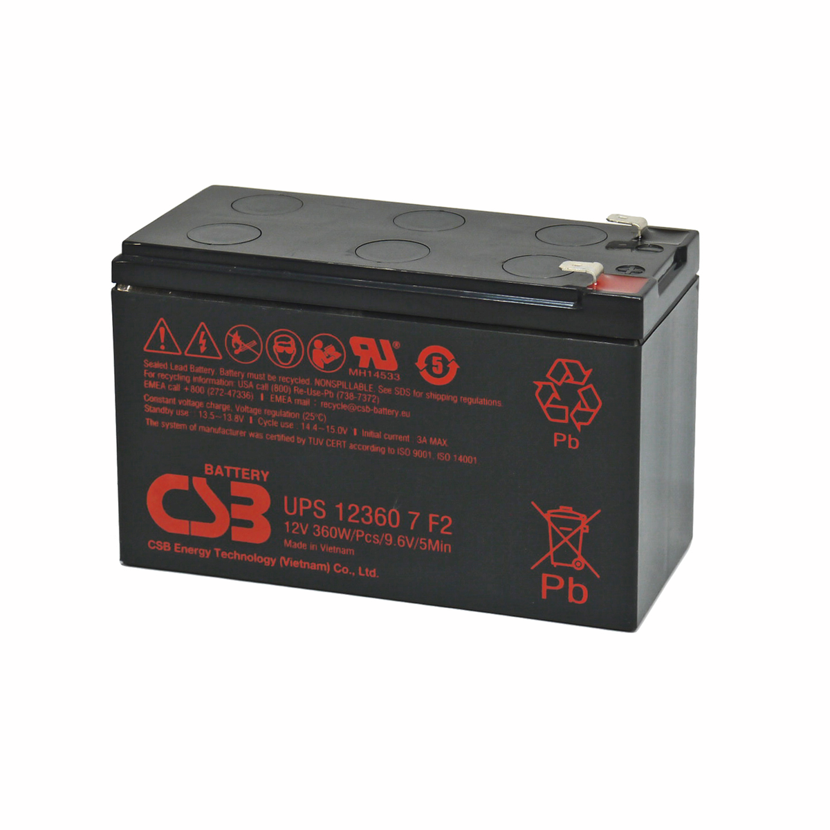 416 | ![]() | Manufacturers Part No. UPS123607F2(UPS123607F2) CSB Lead-acid batteries UPS 12V 7.100mAh L150,9mm B64,8mm H94,3mm Male Tab Connector 6,4 | Customer Part No. Customer Project No. | 0 Pcs. Planned Delivery Time Ø 2 Weeks Available on order | (at least 10 or mul. of 10) | |||||