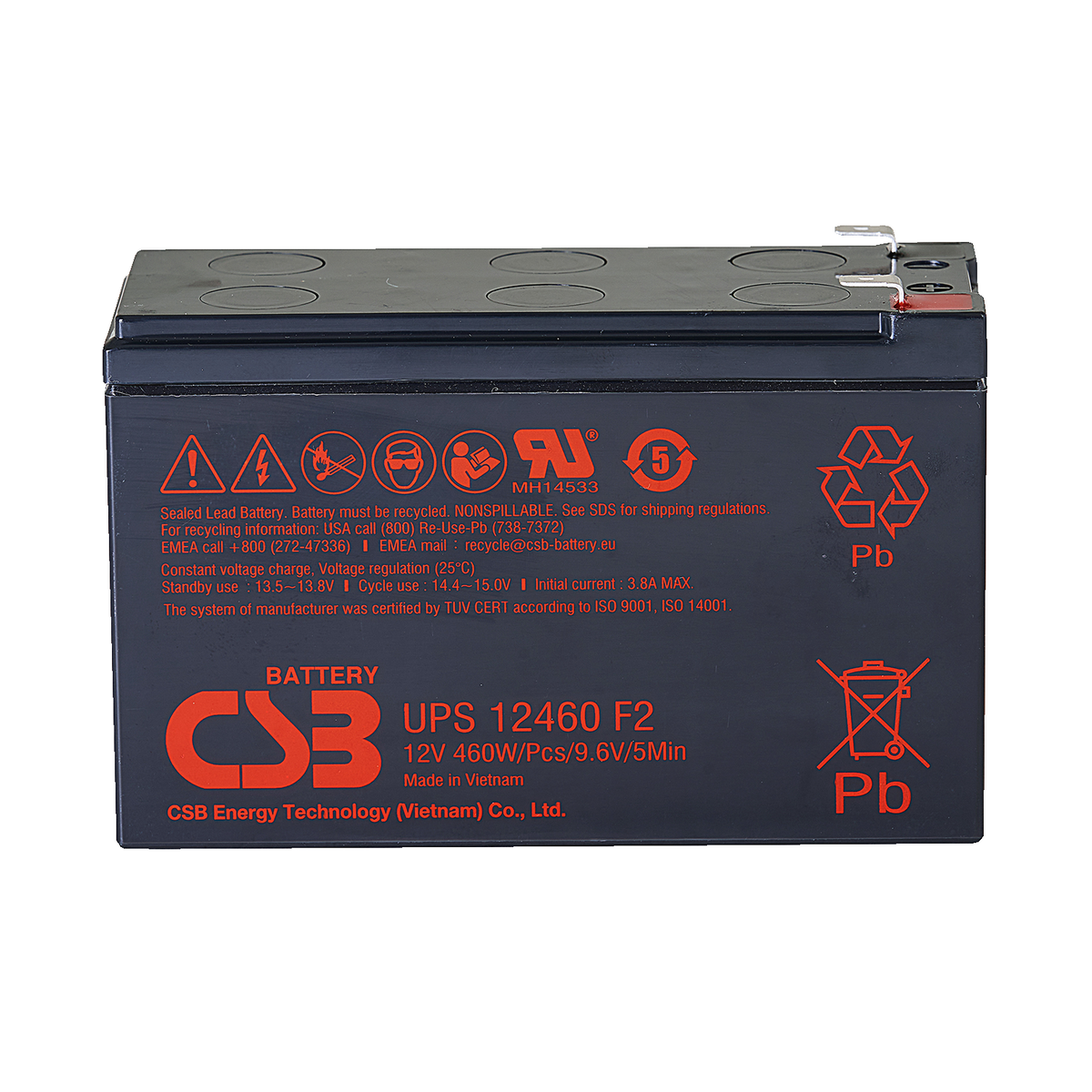 419 | ![]() | Manufacturers Part No. UPS12460(UPS12460) CSB Lead-acid batteries UPS 12V 9.600mAh L150,9mm B64,8mm H94,3mm Male Tab Connector 6,4 | Customer Part No. Customer Project No. | 7 Pcs. Planned Delivery Time Ø 2 Weeks Available (from stock) | (at least 1 or mul. of 1) | |||||