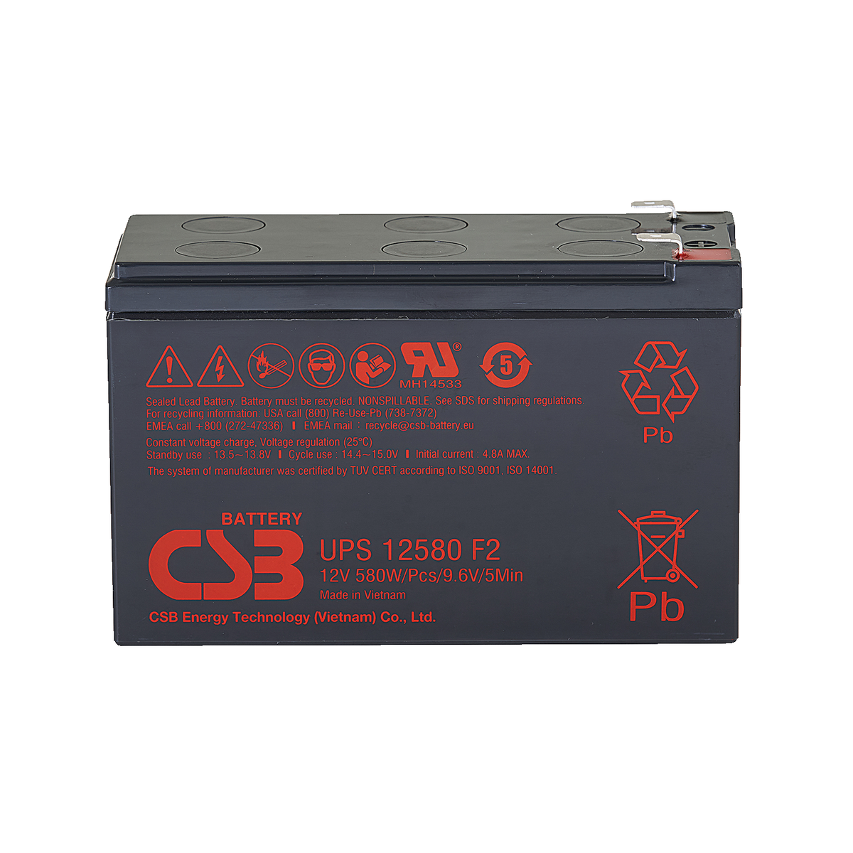 418 | ![]() | Manufacturers Part No. UPS12580(UPS12580) CSB Lead-acid batteries UPS 12V 9.400mAh L150,9mm B64,8mm H94,3mm Male Tab Connector 6,4 | Customer Part No. Customer Project No. | 0 Pcs. Planned Delivery Time Ø 2 Weeks Available on order | (at least 5 or mul. of 5) | |||||