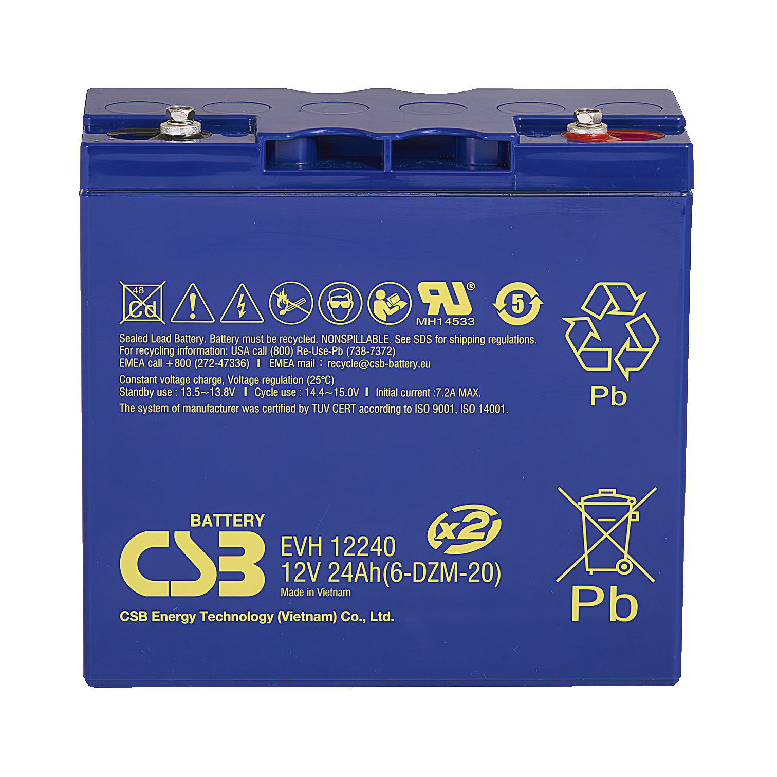 CSB Lead-acid batteries EVH 12V 39.000mAh L195,6mm B130mm H154,8mm Flat Pole M5