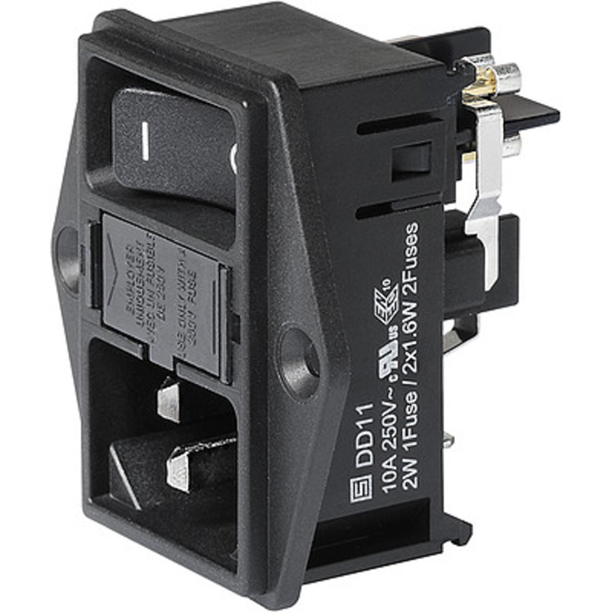46 | ![]() | Manufacturers Part No. DD11.0124.1110(DD11.0124.1110) Schurter DD11 Panel C14 4 Pole IP40 Plug in Thermoplast (TP) 10A 250VAC 70°C 56mm I New | Customer Part No. Customer Project No. | 100 Pcs. Planned Delivery Time Ø 8 Weeks Available (from stock) | (at least 1 or mul. of 1) | Schurter | Plug | Panel | Plug | Latching lug | rectangular | 4 | IP40 | CSA C22.2 no. 60320-1 IEC 60127-6 IEC 60320-1 IEC 60335-1 IEC 60601-1 IEC 61058-1 IEC 62368-1 UL 60320-1 UL 62368-1 | CCC CE ENEC 10 UKCA cURus | Thermoplast (TP) | UL 94 V-0 | Plug in | -25.0 °C | 85.0 °C | 70.0 °C | 10.0 A | 250.0 V AC | |||||||