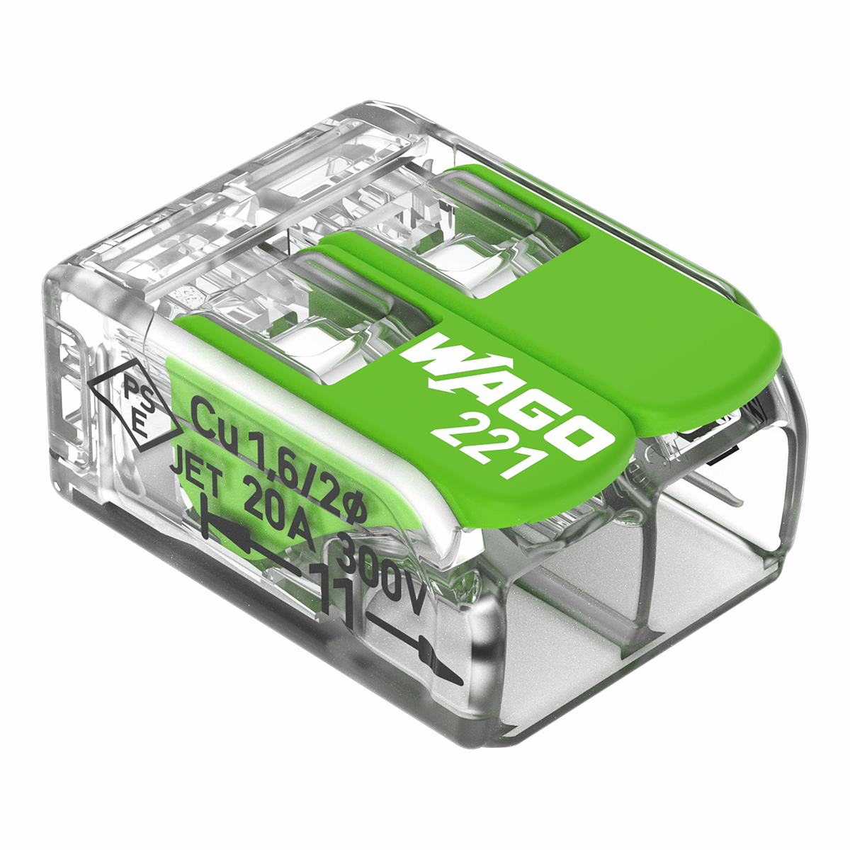 WAGO Connecting terminal 221 Green Range CAGE CLAMP® 2 Pole Polycarbonat (PC) transparent Cage Clamp