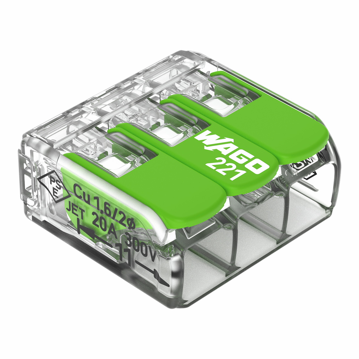 WAGO Connecting terminal 221 Green Range CAGE CLAMP® 3 Pole Polycarbonat (PC) transparent Cage Clamp