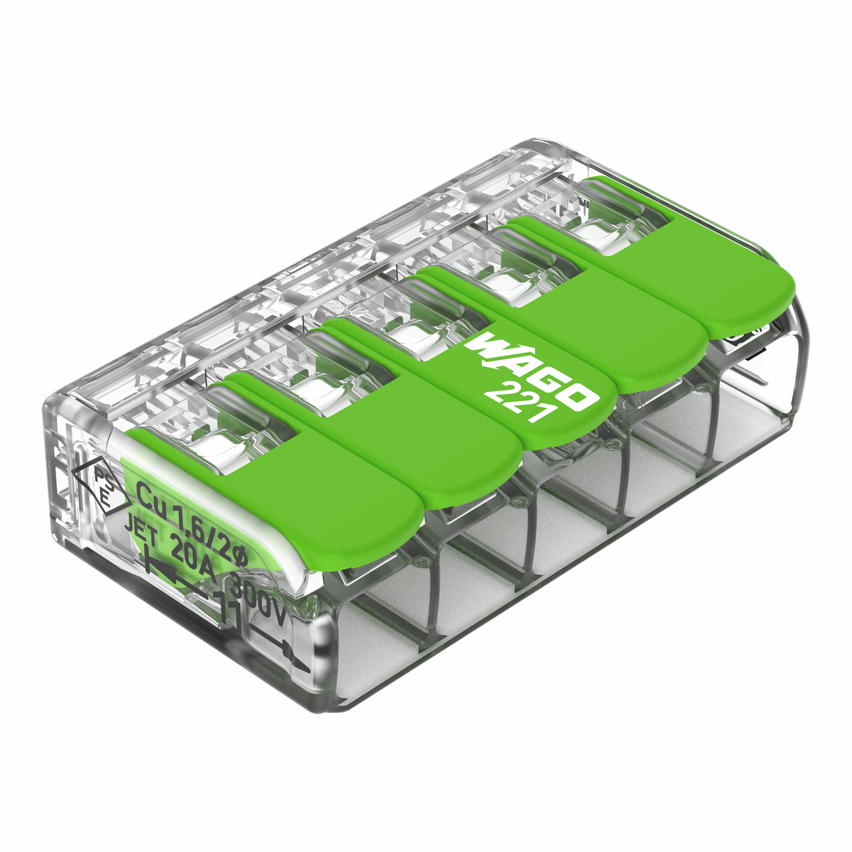 WAGO Connecting terminal 221 Green Range CAGE CLAMP® 5 Pole Polycarbonat (PC) transparent Cage Clamp