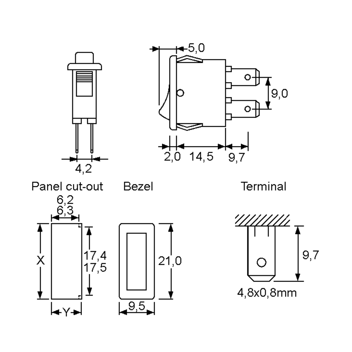 29 | ![]() | Manufacturers Part No. SX81111811210000(SX81111811210000) SIGNAL LUX Rocker Switches SX81 1x0-E black 11x30mm 250VAC 20A unlit | Customer Part No. Customer Project No. | 630 Pcs. Planned Delivery Time Ø 13 Weeks Available (from stock) | (at least 10 or mul. of 10) | SIGNAL LUX | Rocker Switches | 1xNO | 1x0-E | black | black | 125.0 °C | unlit | 11x30mm | 250.0 V AC | 20.0 A | UL94V2 | CE ENEC cULus | ||||||||||