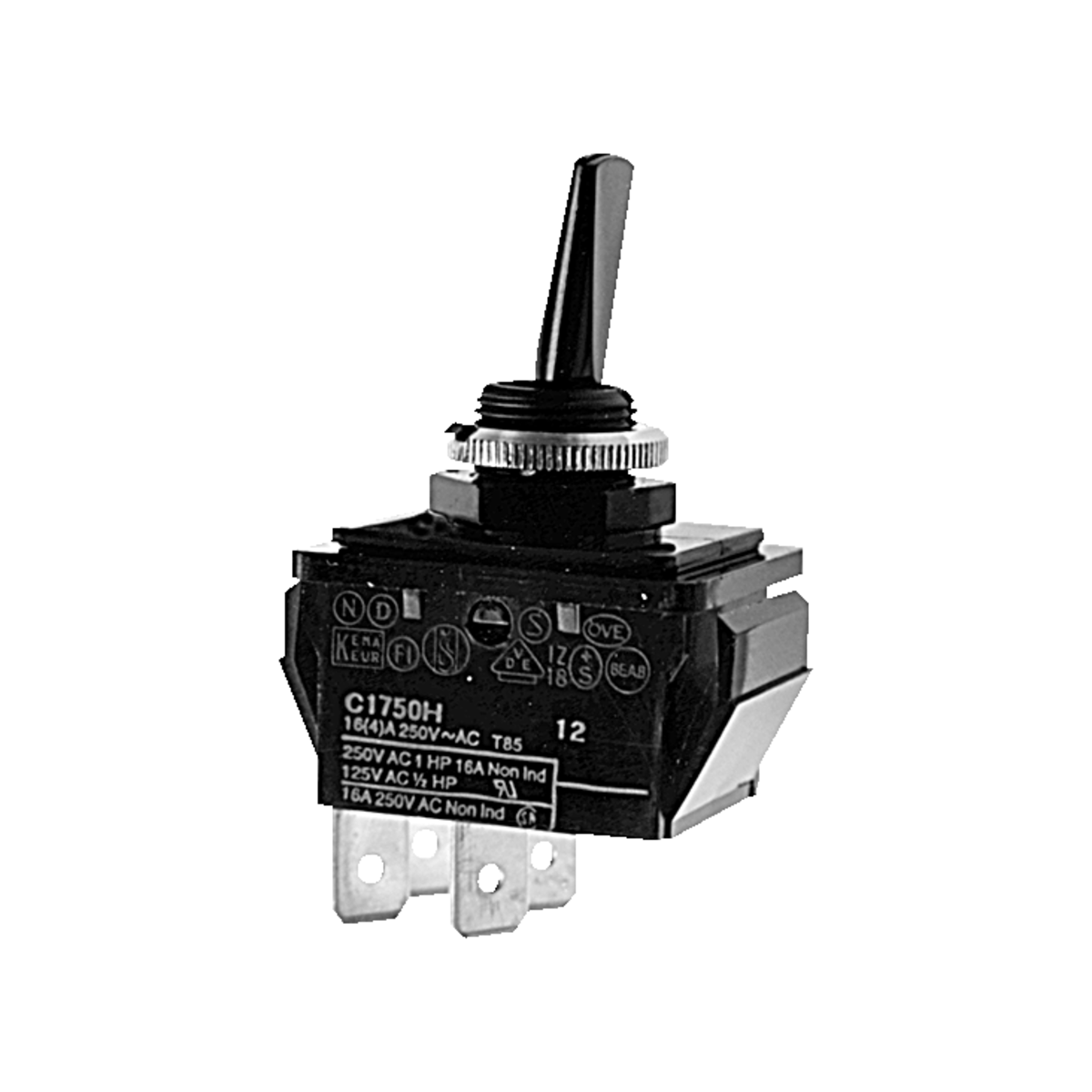 46 | ![]() | Manufacturers Part No. C1750HOAAAV(C1750HOSW) Bulgin Ltd. 1750 Toggle Switches 2x0-E Rocker arm black 250VAC 16A Ø12,7mm | Customer Part No. Customer Project No. | 180 Pcs. Planned Delivery Time Ø 18 Weeks Available (from stock) | (at least 10 or mul. of 10) | Bulgin Ltd. | Toggle Switches | 2xNO | 2x0-E | black | 30.2 mm | 25.0 mm | 12.2 mm | 250.0 V AC | 16.0 A | 36.0 A | Nylon 6.6 | Nylon 6.6 | 85.0 °C | ENEC15 UL cCSA | UL94V2 | ||||||||