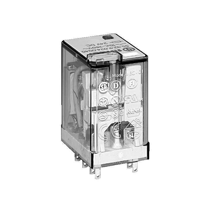 Finder Industrial relay 55.32 DPDT 10A 24VDC 600Ohm 27,7mmx20,7mmx37,2mm RTI