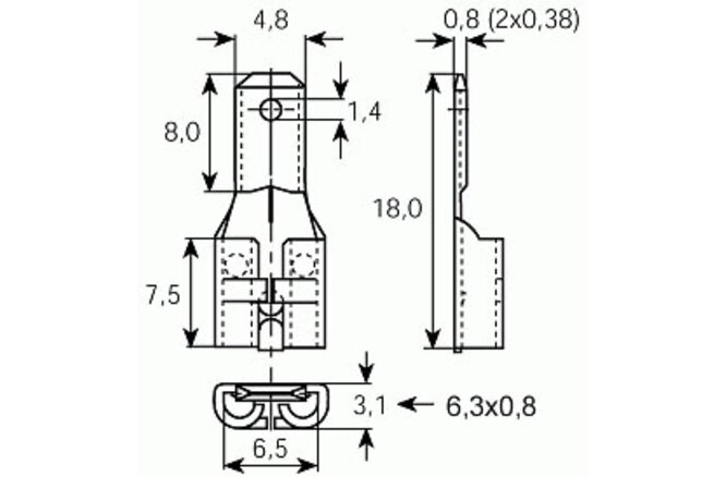 Frei Flat plug distributor KFA30 1 Pole straight blue verzinnt 0,8mm 1,5mm² 2,5mm²