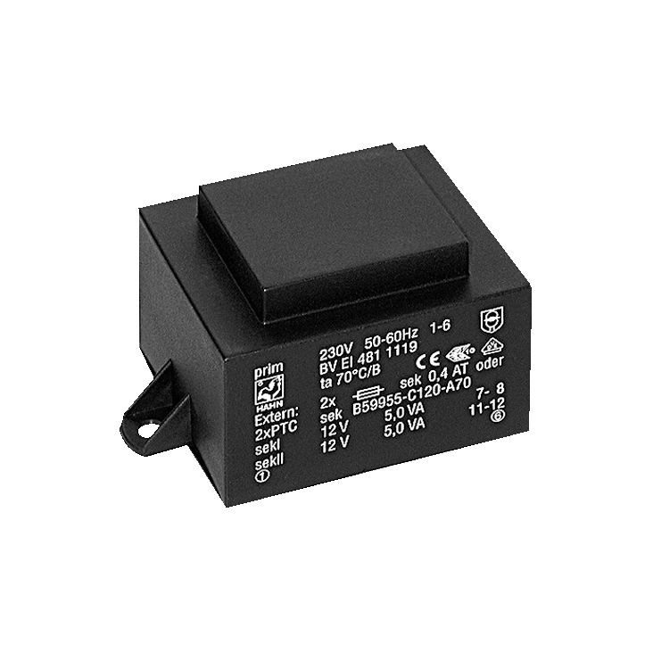 Hahn Print transformer BVEI481 EI48 10VA 230V 15V 667mA not short circuit proof