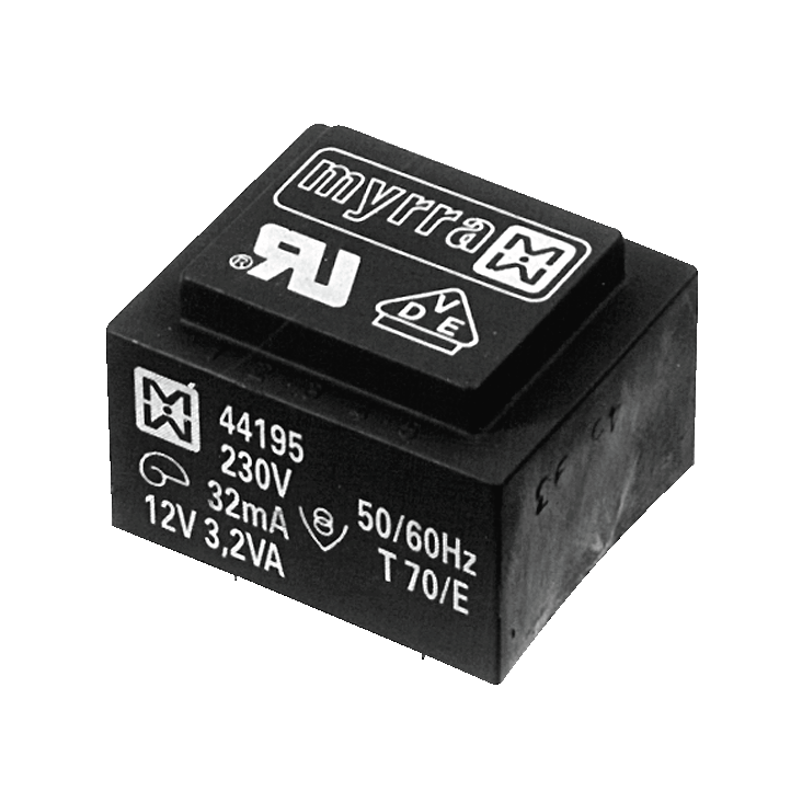 Myrra Print transformer MT5 EI38 3,2VA 230V 12V 267mA not short circuit proof