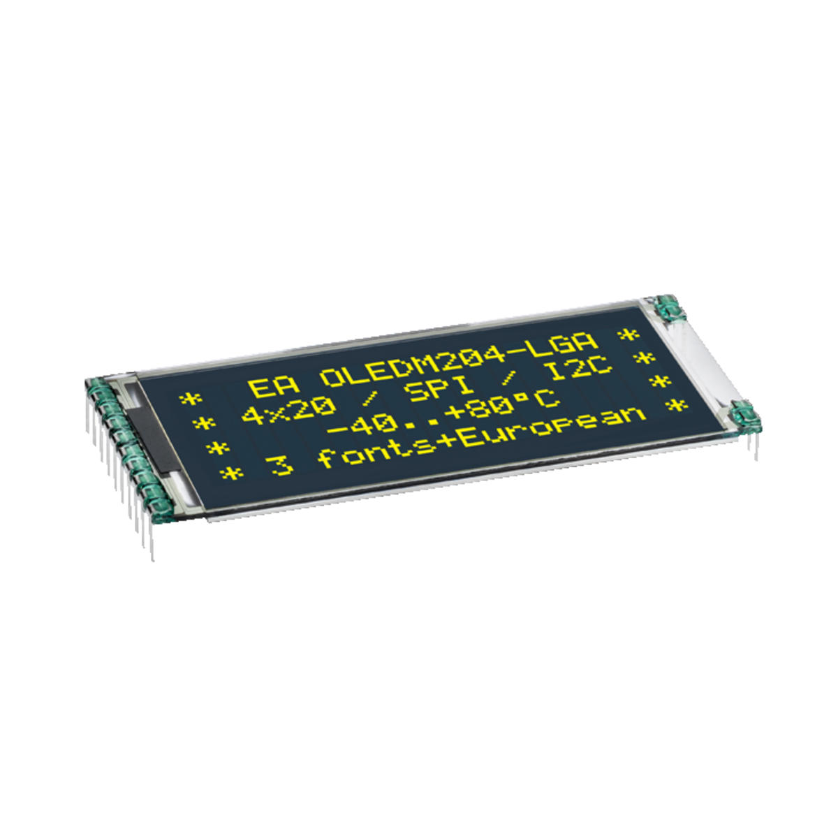 11 | ![]() | Manufacturers Part No. EAOLEDM204-GGA(EAOLEDM204-GGA) DISPLAY VISIONS Display OLED Alphanumeric 20x4/3/2 | Customer Part No. Customer Project No. | 5 Pcs. Planned Delivery Time Ø 2 Weeks Available (from stock) | (at least 1 or mul. of 1) | OLED Module | DISPLAY VISIONS | Dot Matrix | SPI | 2.4 V | 5.5 V | 20x4/3/2 | yellow | -40.0 °C | 80.0 °C | ||||||