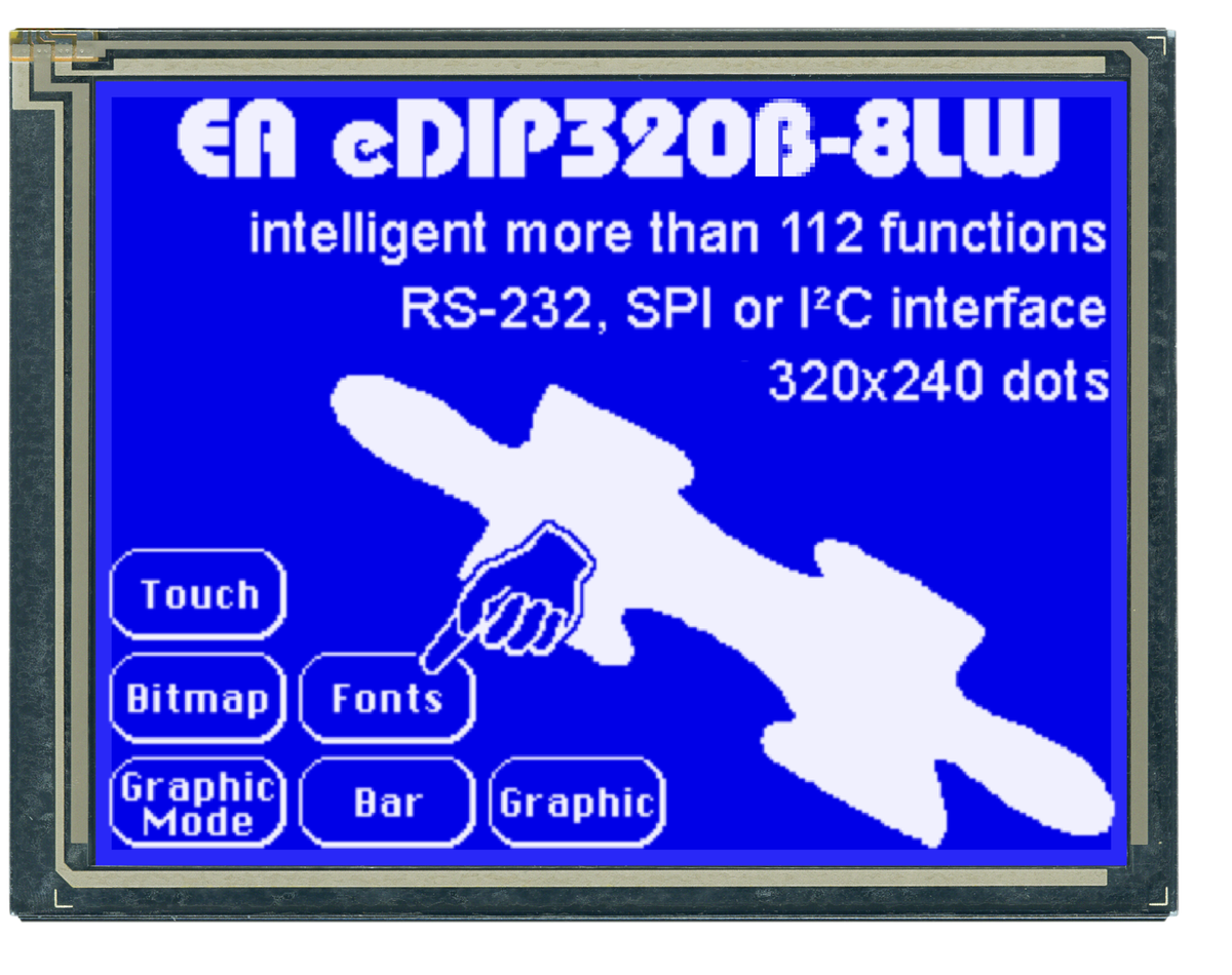 532 | ![]() | Manufacturers Part No. EAEDIP320J-8LW(EAEDIP320J-8LW) DISPLAY VISIONS LCD Graphic Module FSTN 320x240 LED white | Customer Part No. Customer Project No. | 1 Pcs. Planned Delivery Time Ø 20 Weeks Available (from stock) | (at least 1 or mul. of 1) | LCD Graphic Module | DISPLAY VISIONS | 5.0 V | -20.0 °C | 70.0 °C | ||||||||