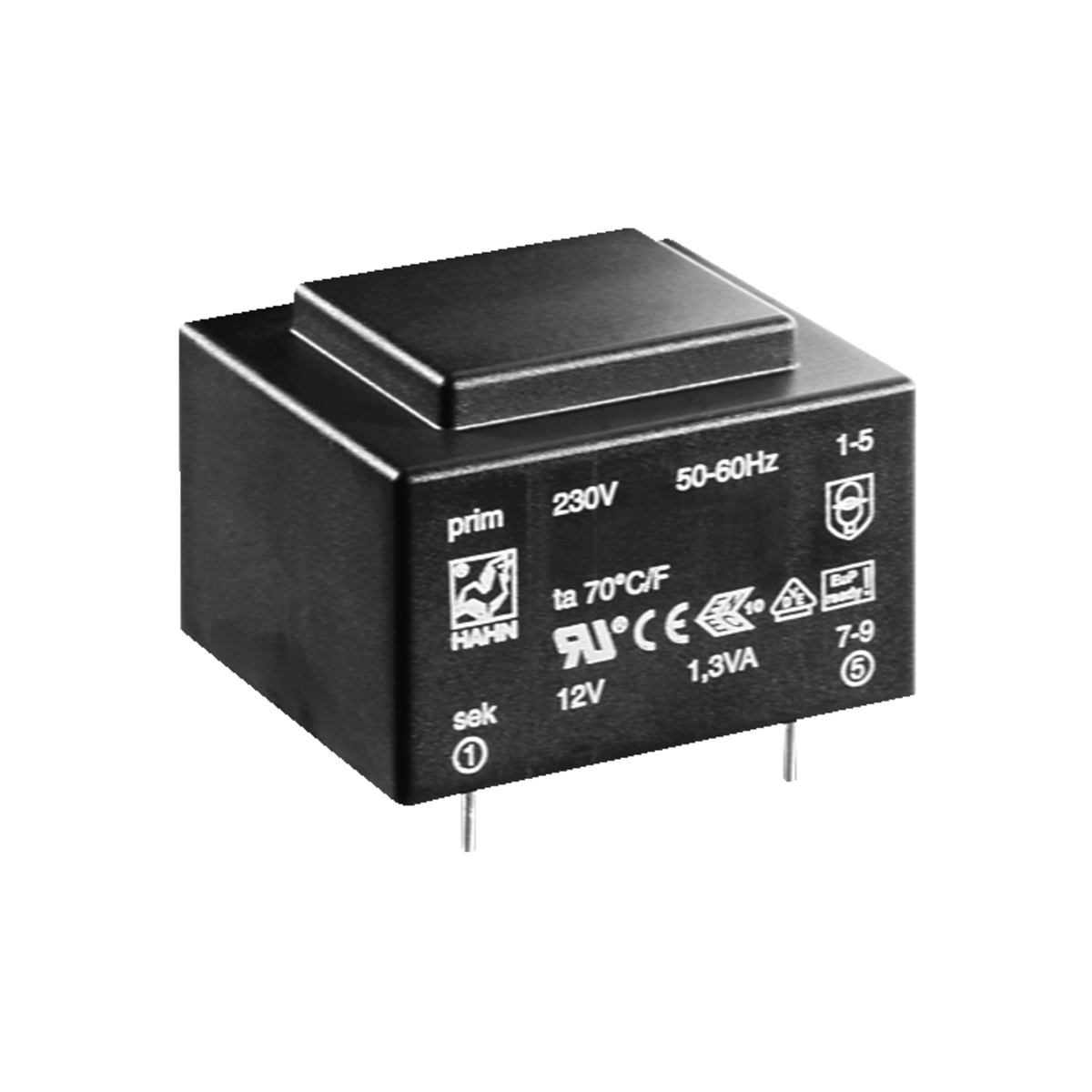 86 | ![]() | Manufacturers Part No. BVEI3048006(BVEI3048006) Hahn Print transformer BVEI304 EI30 2,1VA 230V 2x12V 2x88mA absolutely short circuit proof | Customer Part No. Customer Project No. | 0 Pcs. Planned Delivery Time Ø 3 Weeks Available on order | (at least 50 or mul. of 50) | Hahn | Print transformer | EI30 | 2.1 VA | 230 V | 2 x 12 V | 2 | 2 x 88 mA | 33.2 mm | 28.2 mm | 27.4 mm | Ta 70/F | ENEC10 UL VDE cCSA | |||||