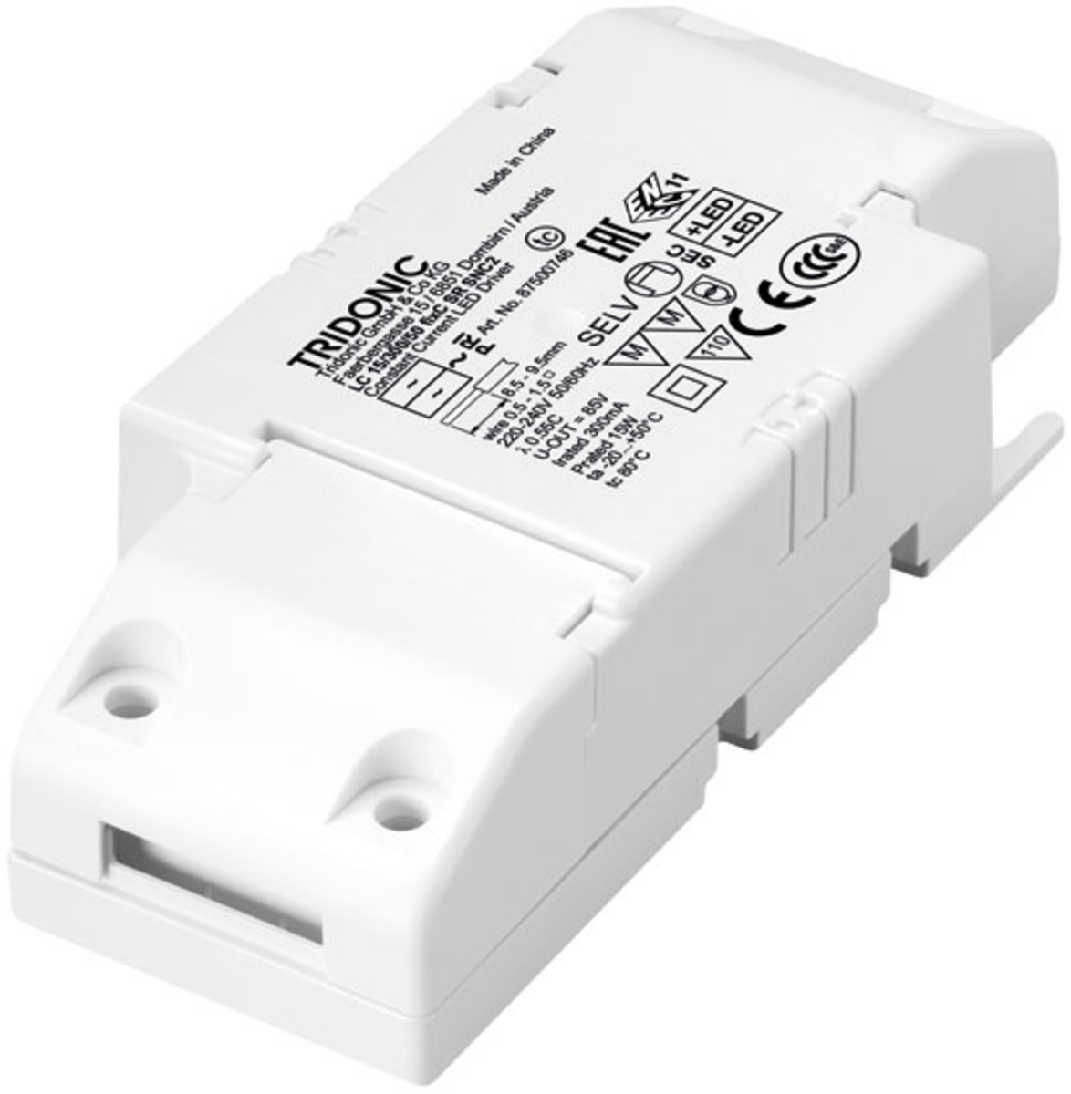66 | ![]() | Manufacturers Part No. 28000693(TRID28000693) Tridonic LC 17W 250-700mA flexC C EXC AC/DC LED power supply unit CC 17W 0,7A IP20 not dimmable New | Customer Part No. Customer Project No. | 8 Pcs. Planned Delivery Time Ø 3 Weeks Available (from stock) | (at least 1 or mul. of 1) | Tridonic | 17.0 W | 0.7 A | 15.0 V | 50.0 V | not dimmable | Enclosed Plastic | IP20 | 84.0 % | 198.0 V | 264.0 V | -25.0 °C | 55.0 °C | 105.0 mm | 70.0 mm | 22.0 mm | Push-In Terminal | Lighting | CCC CE EAC EN ENEC RCM UKCA | EN 61347-1 EN 61347-2-13 | DC compatible Emergency Lighting Unit Output Current Selectable | |||||