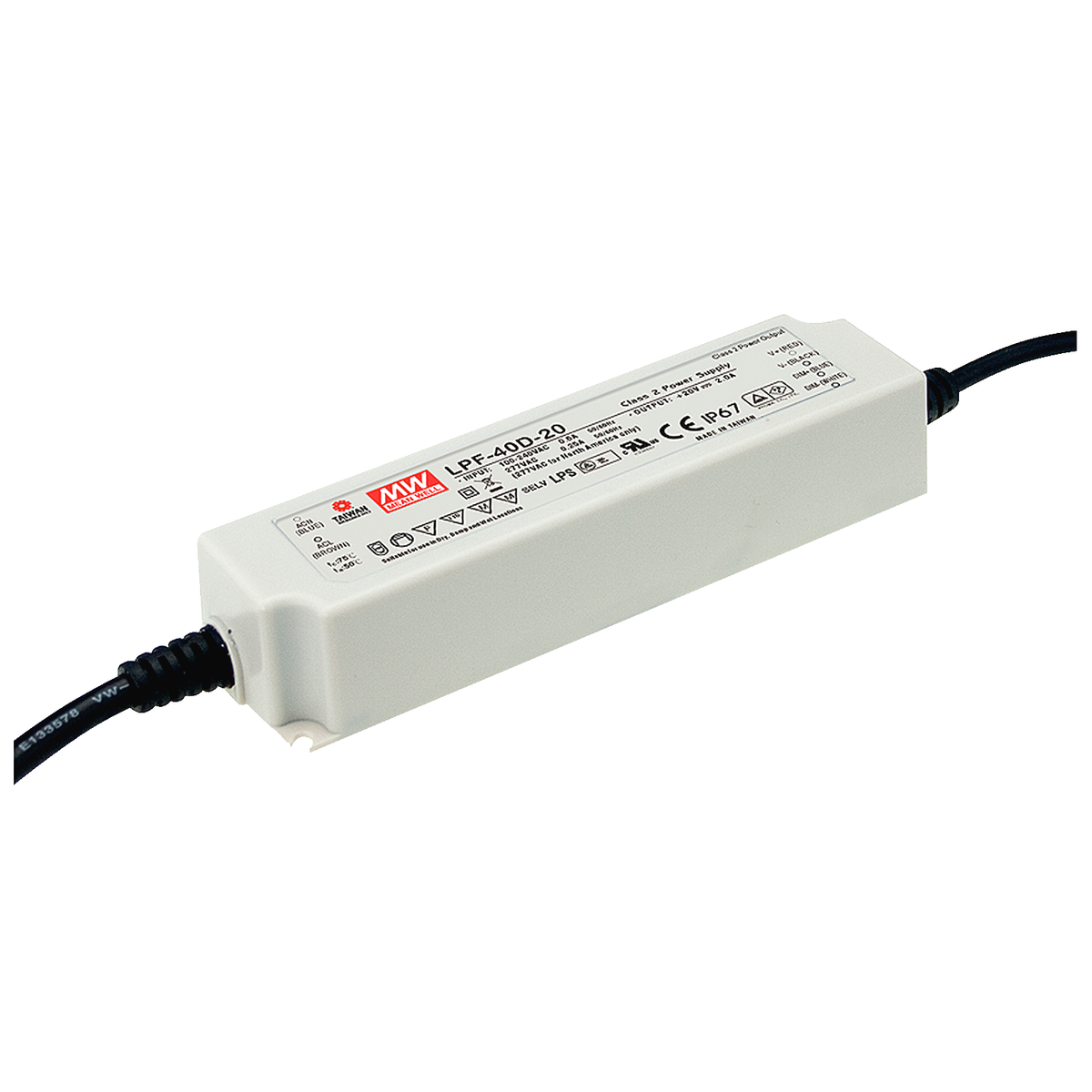 119 | ![]() | Manufacturers Part No. LPF-40D-20(LPF-40D-20) MEAN WELL AC/DC LED power supply unit CC 40,08W 2,000A IP67 1-10 Volt PWM Resistiv | Customer Part No. Customer Project No. | 0 Pcs. Planned Delivery Time Ø 7 Weeks Available (from stock) | (at least 1 or mul. of 1) | MEAN WELL | 40.08 W | 2.0 A | 12.0 V | 20.0 V | 1-10 Volt PWM Resistiv | Enclosed Plastic | IP67 | 86.0 % | 90.0 V | 305.0 V | -40.0 °C | 70.0 °C | 162.5 mm | 43.0 mm | 32.0 mm | Strand | Lighting | CCC CE CSA EAC EN ENEC IEC UKCA UL | EN 61347-1 EN 61347-2-13 IEC 61347-1 IEC 61347-2-13 UL 8750 | DC compatible Independent Control Gear | |||||