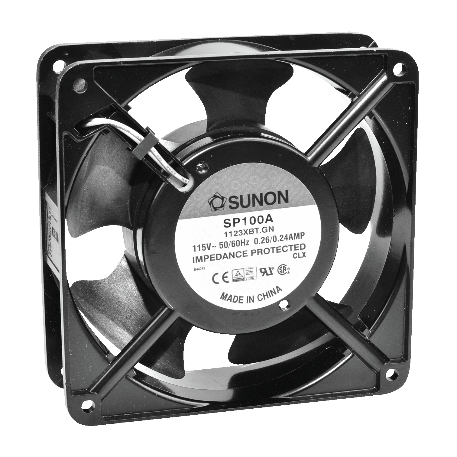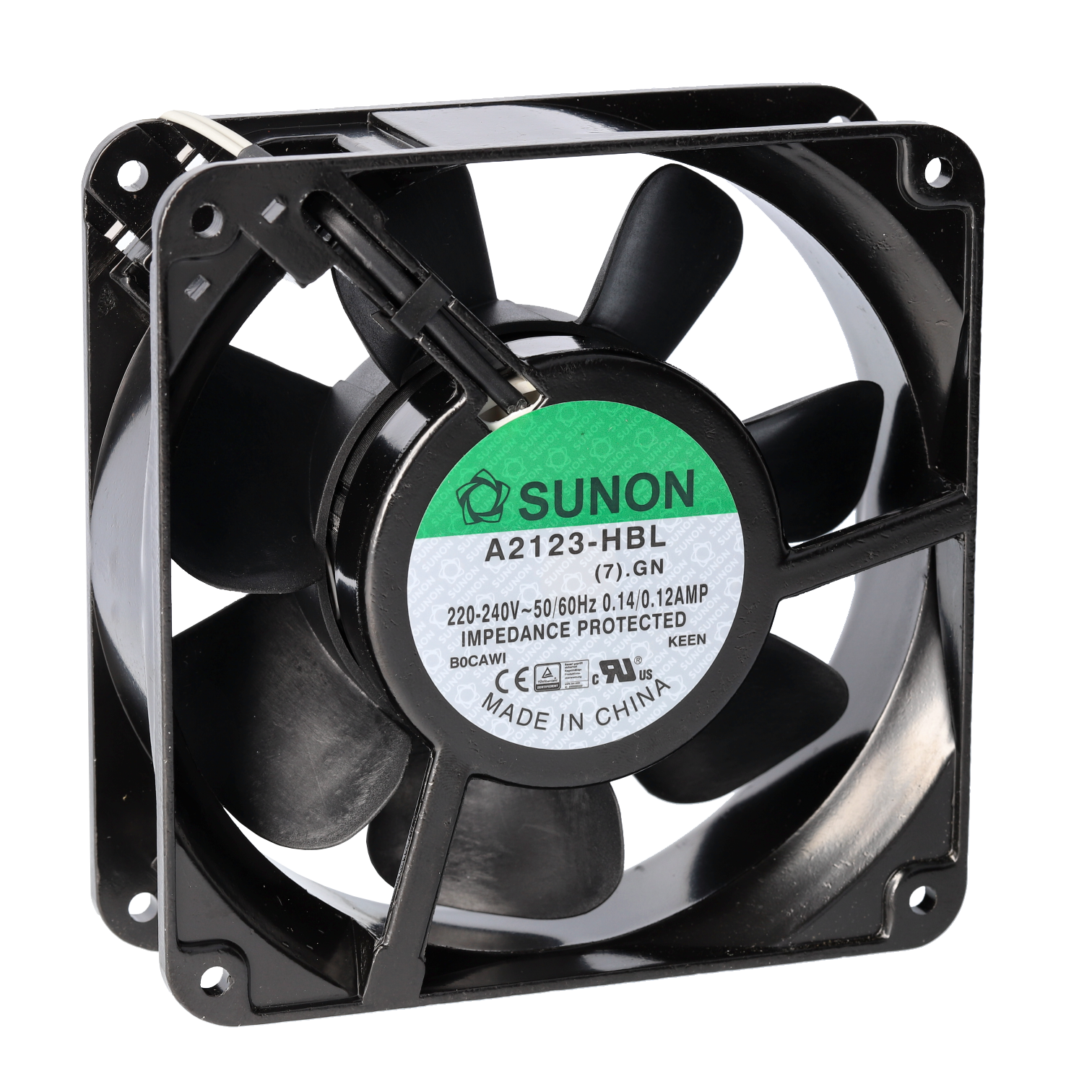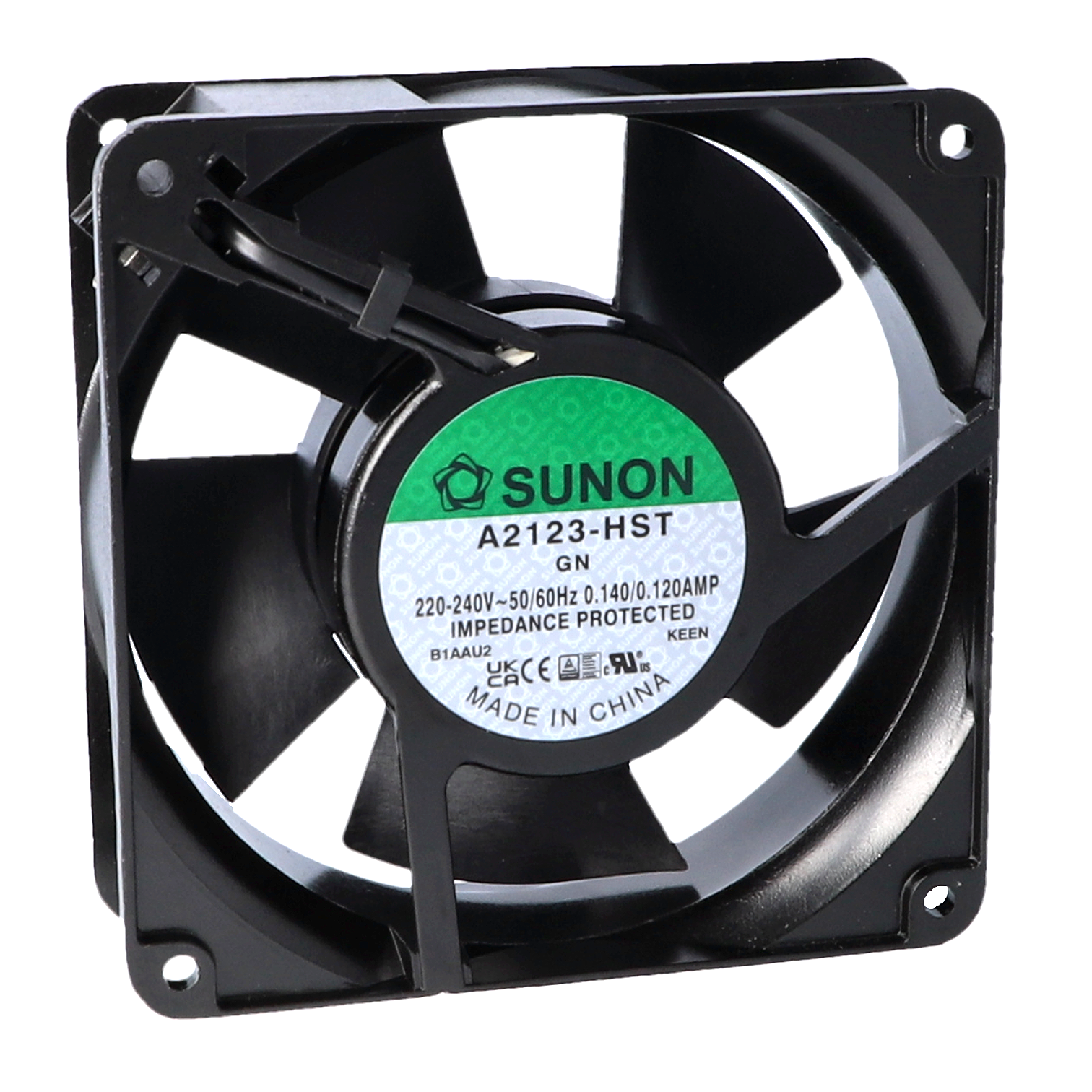 SUNON A Axial AC fan 230VAC 120mm x 38mm Sleeve Bearing Strand AWG24, UL3266, stripped, tinned 161,36m³/h 44dBA