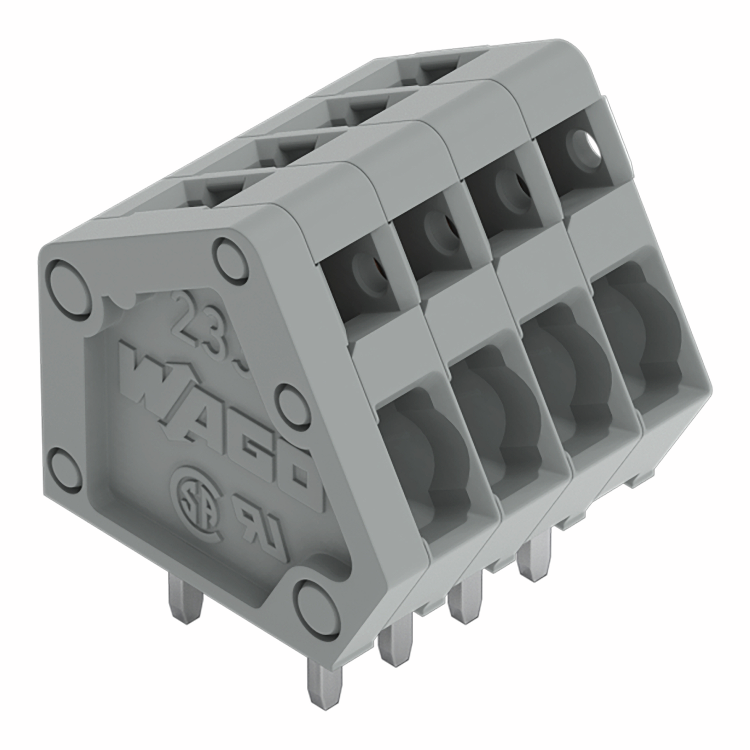 WAGO Terminal block 233 30° 24 Pole Pitch2,5mm gray Solder 62,3mm 15,7mm 28AWG 20AWG 6A 160VAC