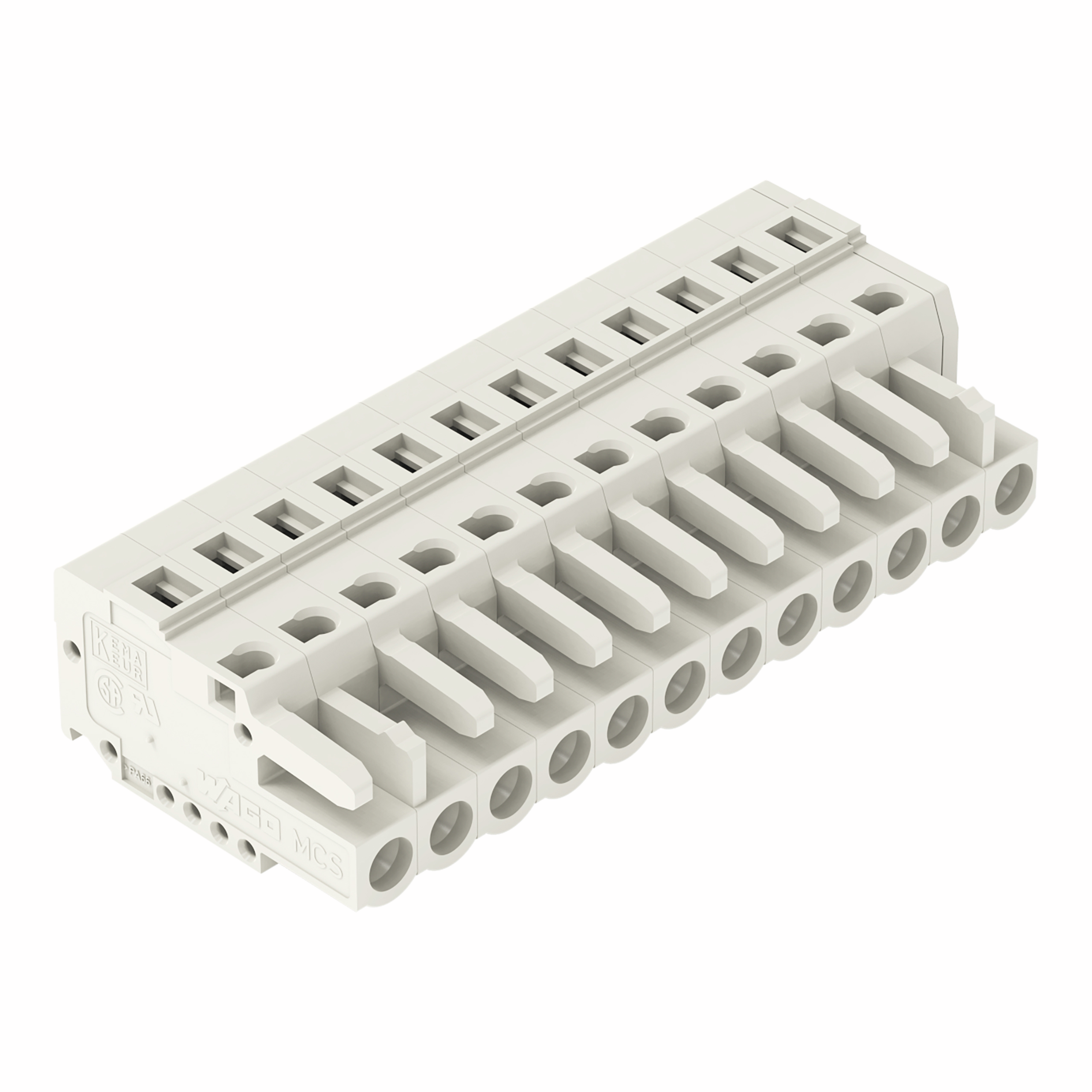 WAGO PCB connector 721 Spring Header Latching lug 1-row horizontal 10 Pole Pitch5mm light gray 320VAC
