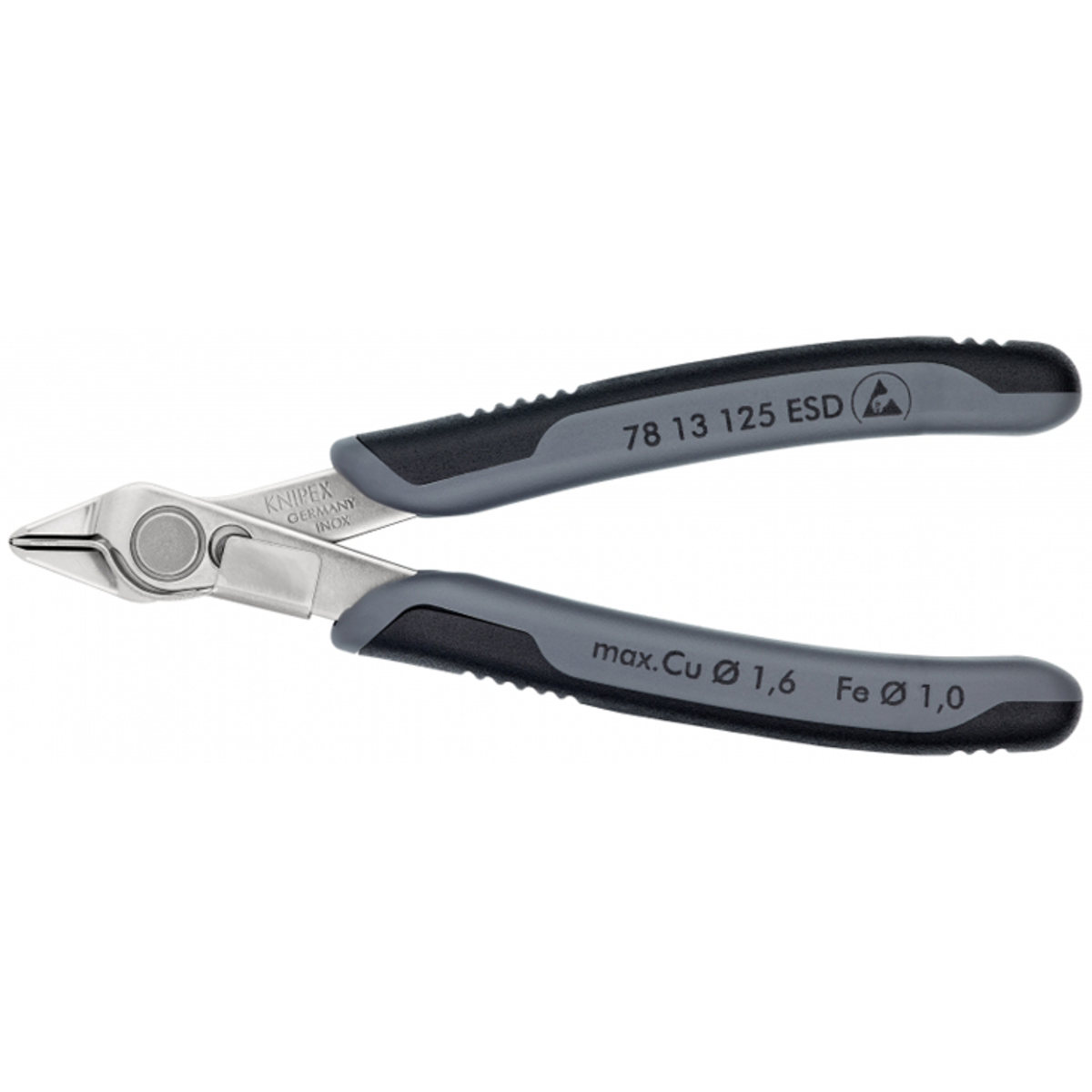 22 | ![]() | Manufacturers Part No. 78 13 125 ESD(KNIP7813E-125) Knipex Super Knips® Side Cutter 125mm ESD tested | Customer Part No. Customer Project No. | 2 Pcs. Planned Delivery Time Ø 2 Weeks Available (from stock) | (at least 1 or mul. of 1) | |||||